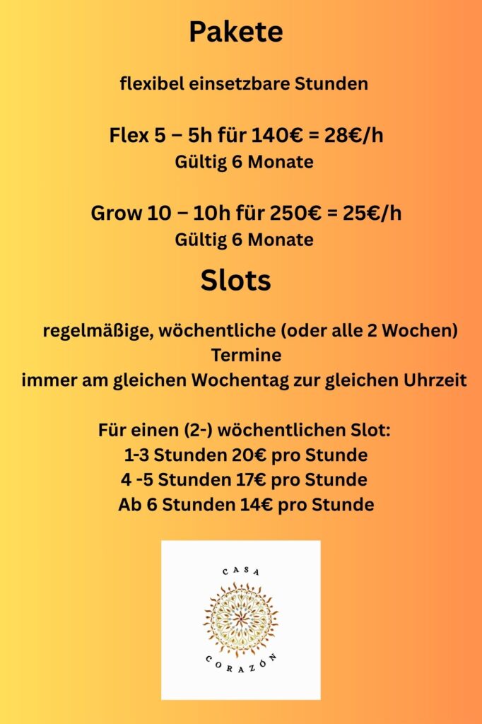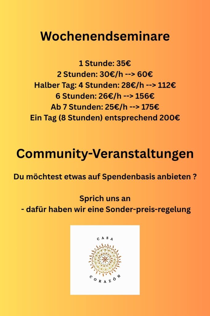 Kontaktiere deswegen unbedingt zuerst Cristina über unsere Email: casa.corazon.berlin@gmail.com